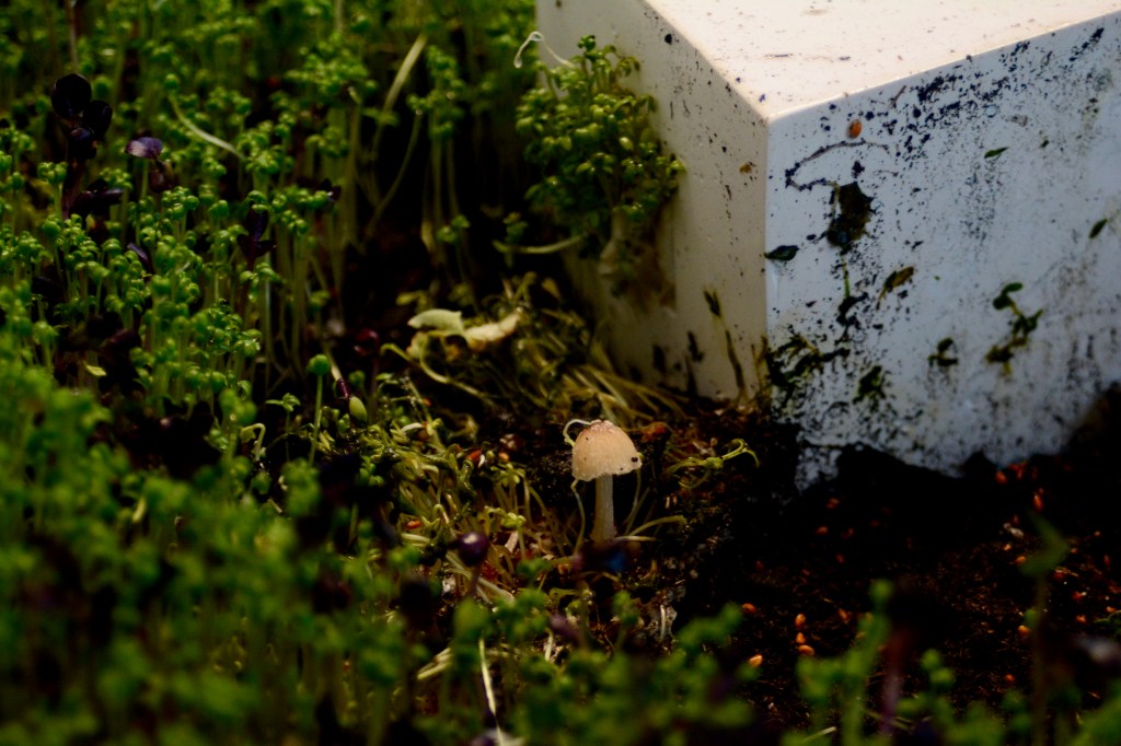 They can both be seen as invasive – the slug physically, the centicube culturally. On a philosophical level we can say that they are mutually dependent: the logic of the centicube had never been established if the world had not appeared slimy and invading. And the invasive Spanish slug had never spread so tremendously if the orderly regimes of the modern world had not brought it here with its freight transport, facilitated it with its warmer climate and with its monocultures decimating the living conditions of the slug’s natural enemies such as the hedgehogs and the toads. The second part of the installation is a video projection on insect net (4.57 min) titled The minor fiction of the passive dirt. The images originate from the film Ferngully (1992) and show the scene where the destructive spirit Hexxus escapes the tree that has kept it imprisoned for years.